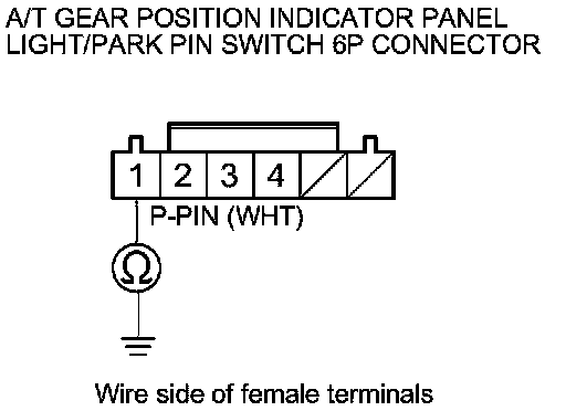 18. Check for continuity between A/T gear position indicator panel light/park pin switch 6P connector terminal No. 1 and body ground.