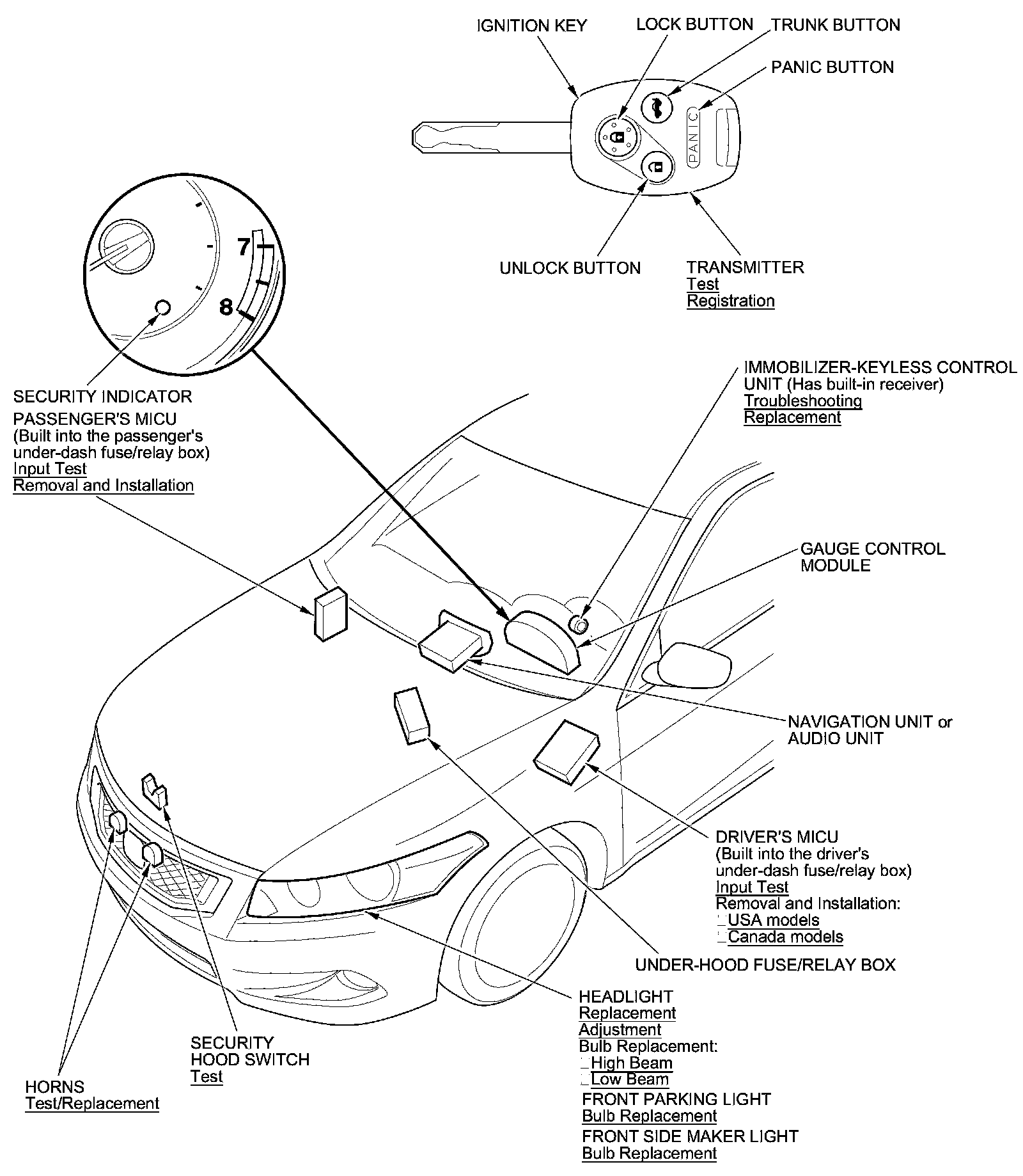 Keyless/Power Door Locks/Security System Component Location Index (2-Door)