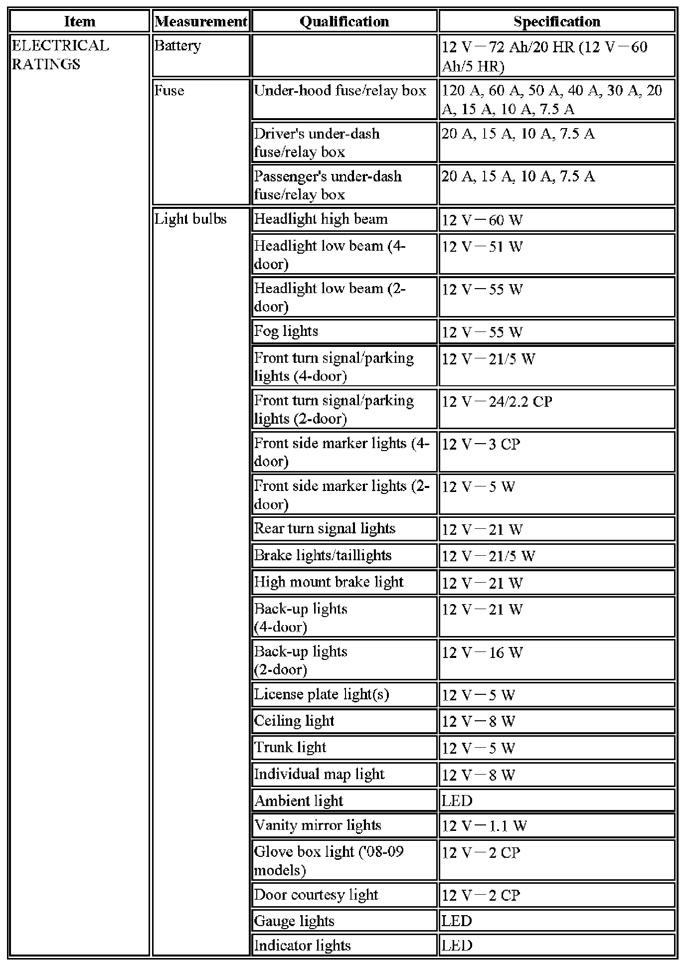Specifications
