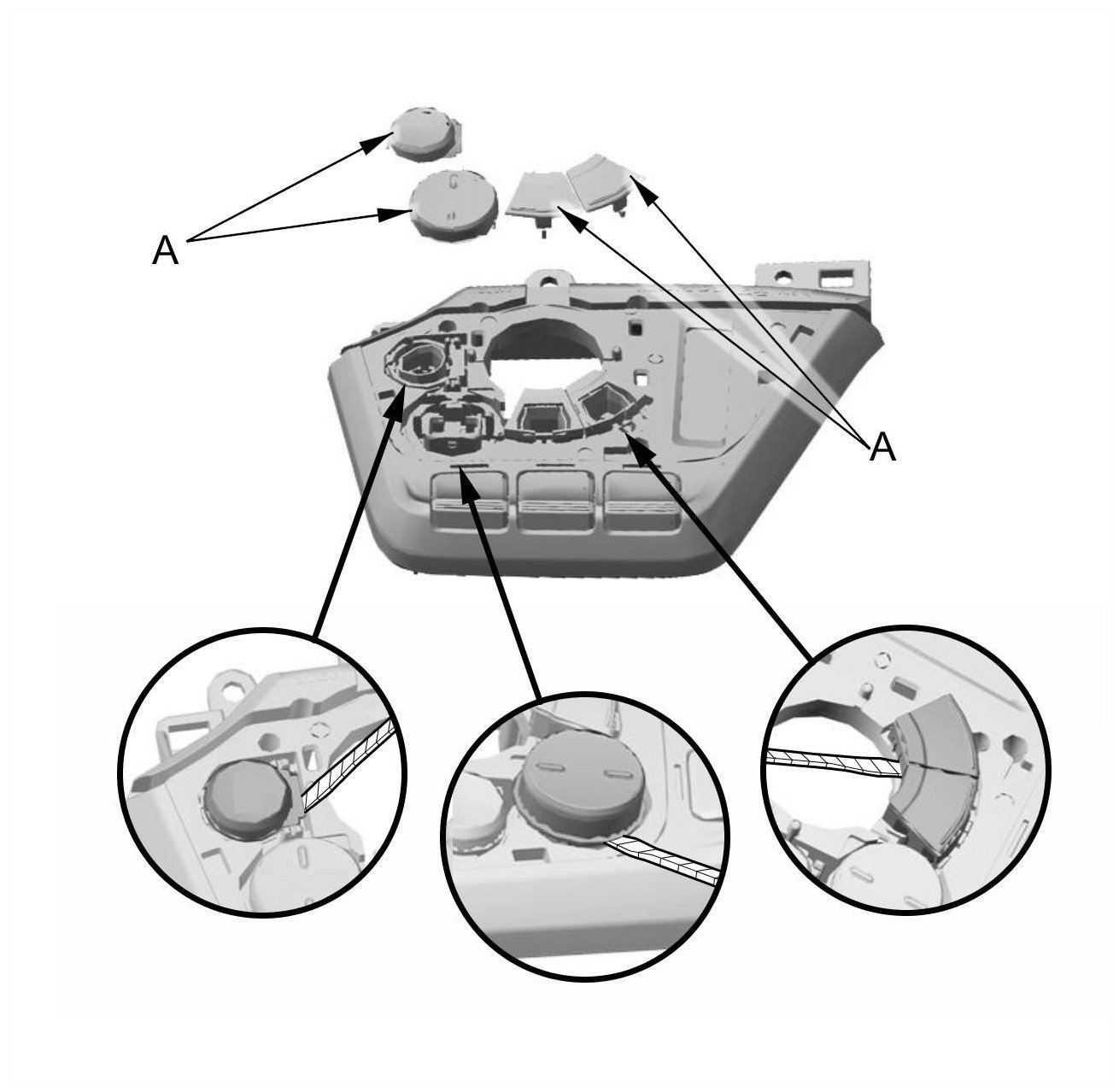 8. Remove the knobs (A) using the flat-tip screwdriver wrapped in protective tape.