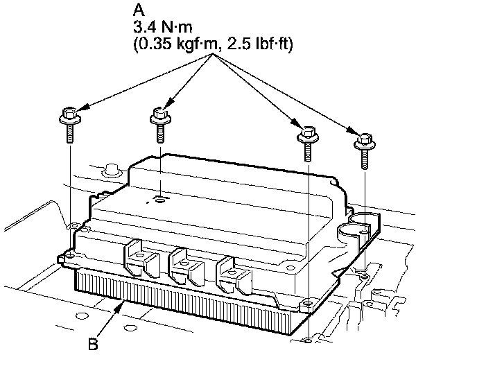 3. Remove the bolts (B, C) and the phase motor current sensor (D).