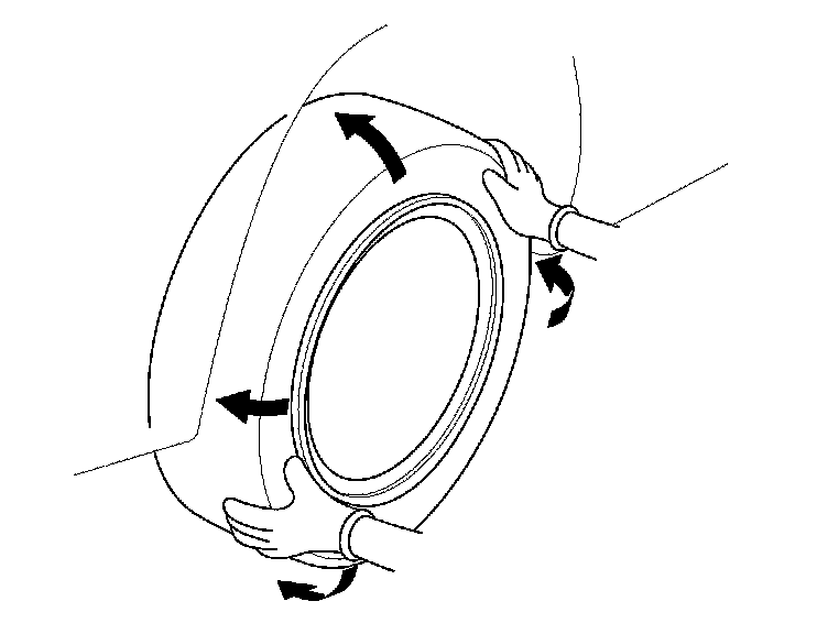 6. Check the suspension ball joints. (Raise and support the vehicle. Hold a tire with your hands, and move it up and down and right and left to check for movement.)
