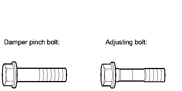 - The camber angle can be adjusted up to ±20 ' (center of tolerance) by replacing one damper pinch bolt with the adjusting bolt.