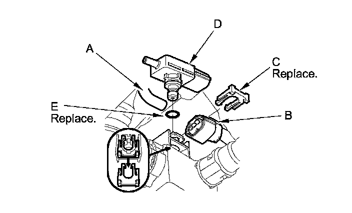 5. Install the parts in the reverse order of removal with a new O-ring (E) and a new retainer.