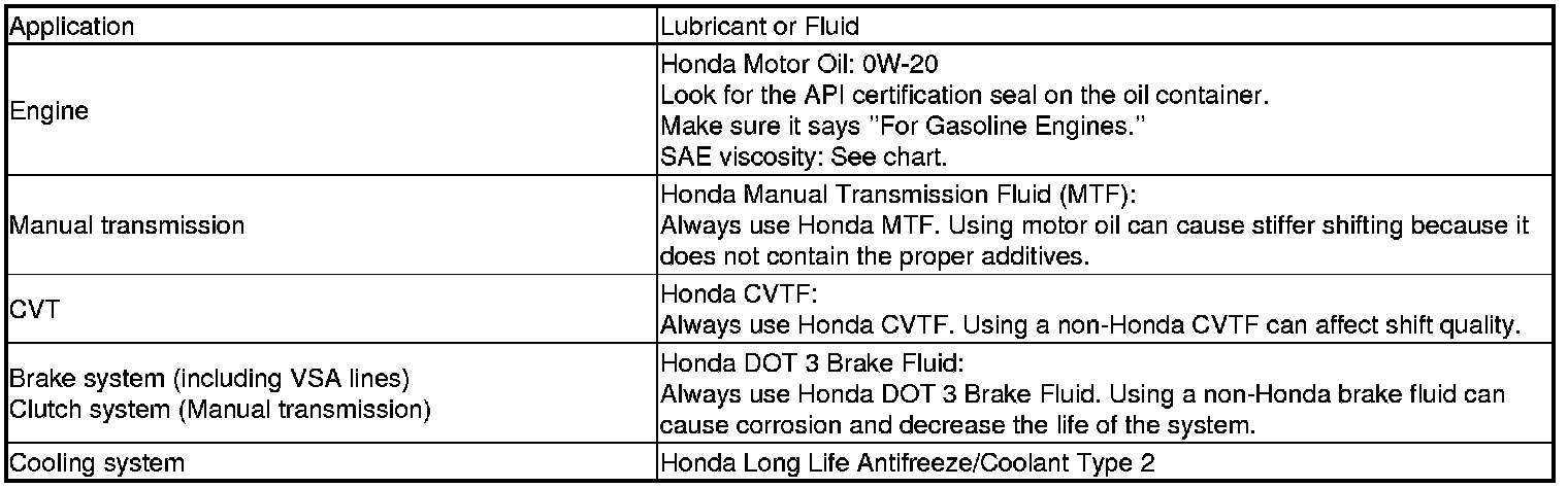 Home >> Honda >> 2011 >> CR-Z L4-1.5L Hybrid >> Repair and Diagnosis >> Specifications >> Fluid Type Specifications >> Fluids