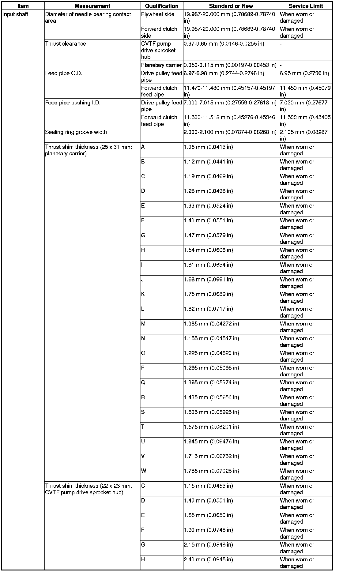 Input Shaft Specifications (CVT)