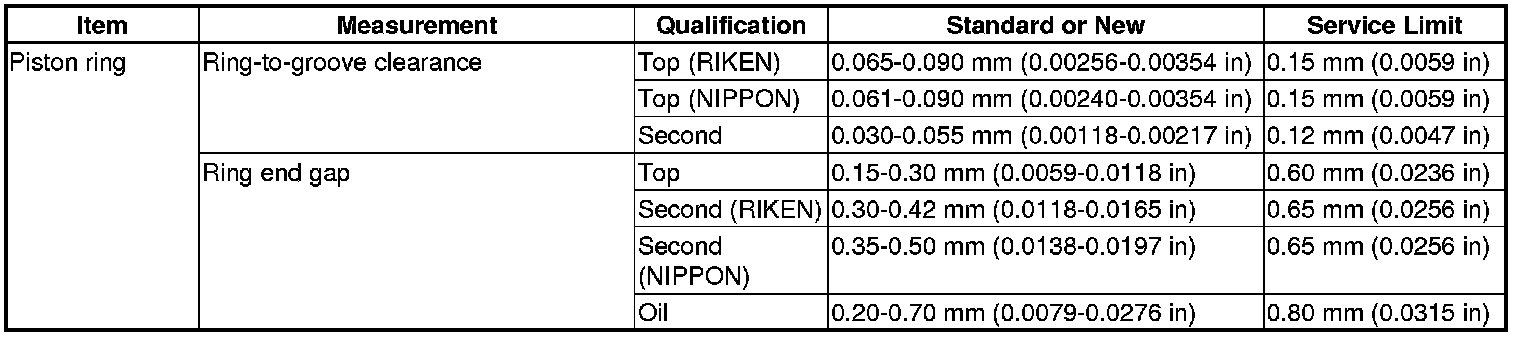 Piston Ring Specification(s)