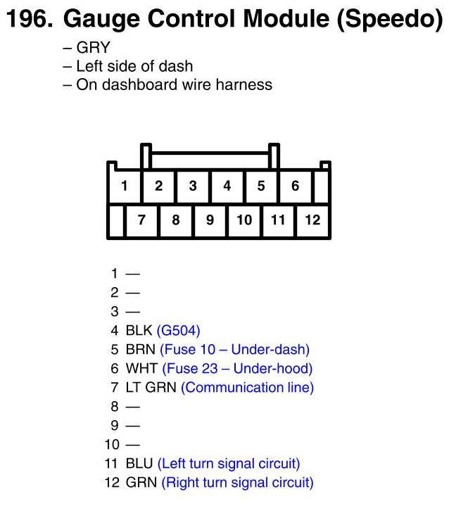 Gauge Control Module (Speedo) Connector View