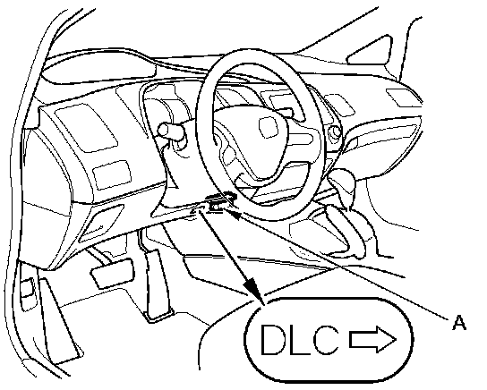 2. Connect the updating tool to the data link connector (DLC) (A) located under the driver's side of dashboard.