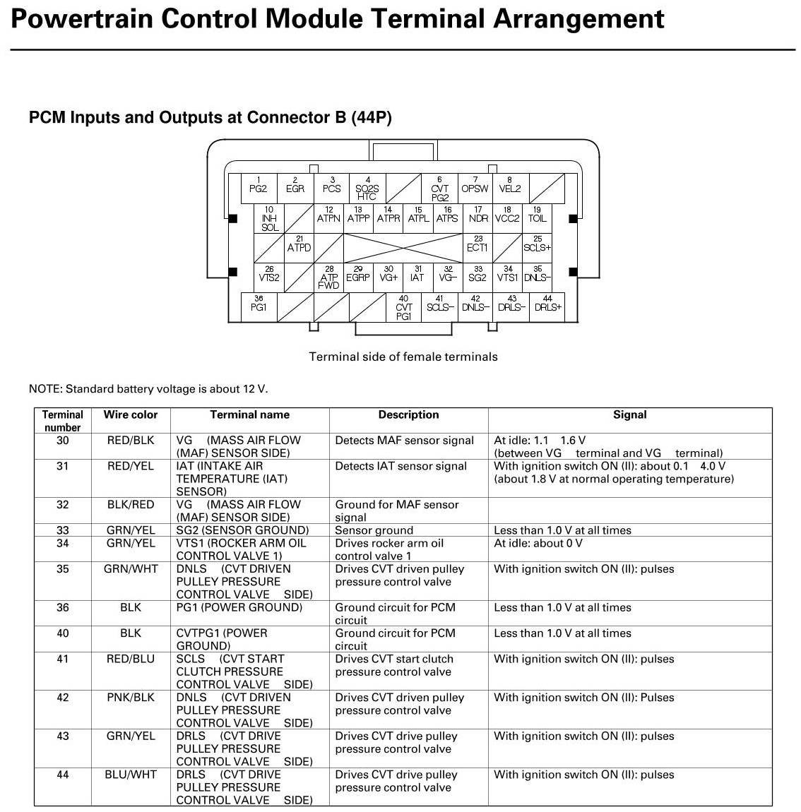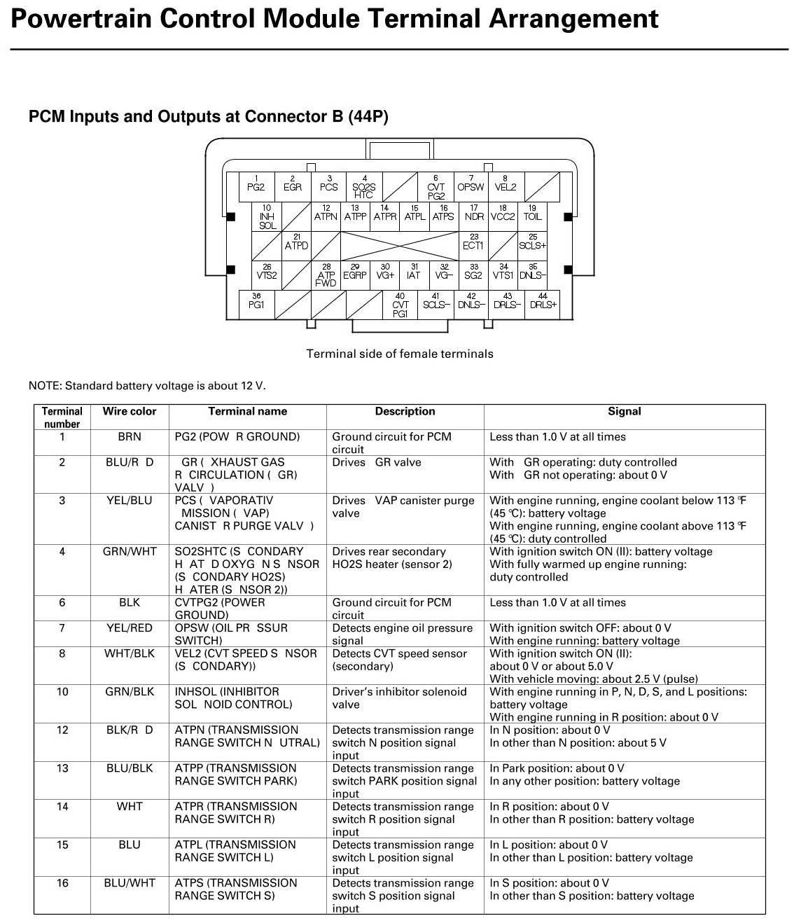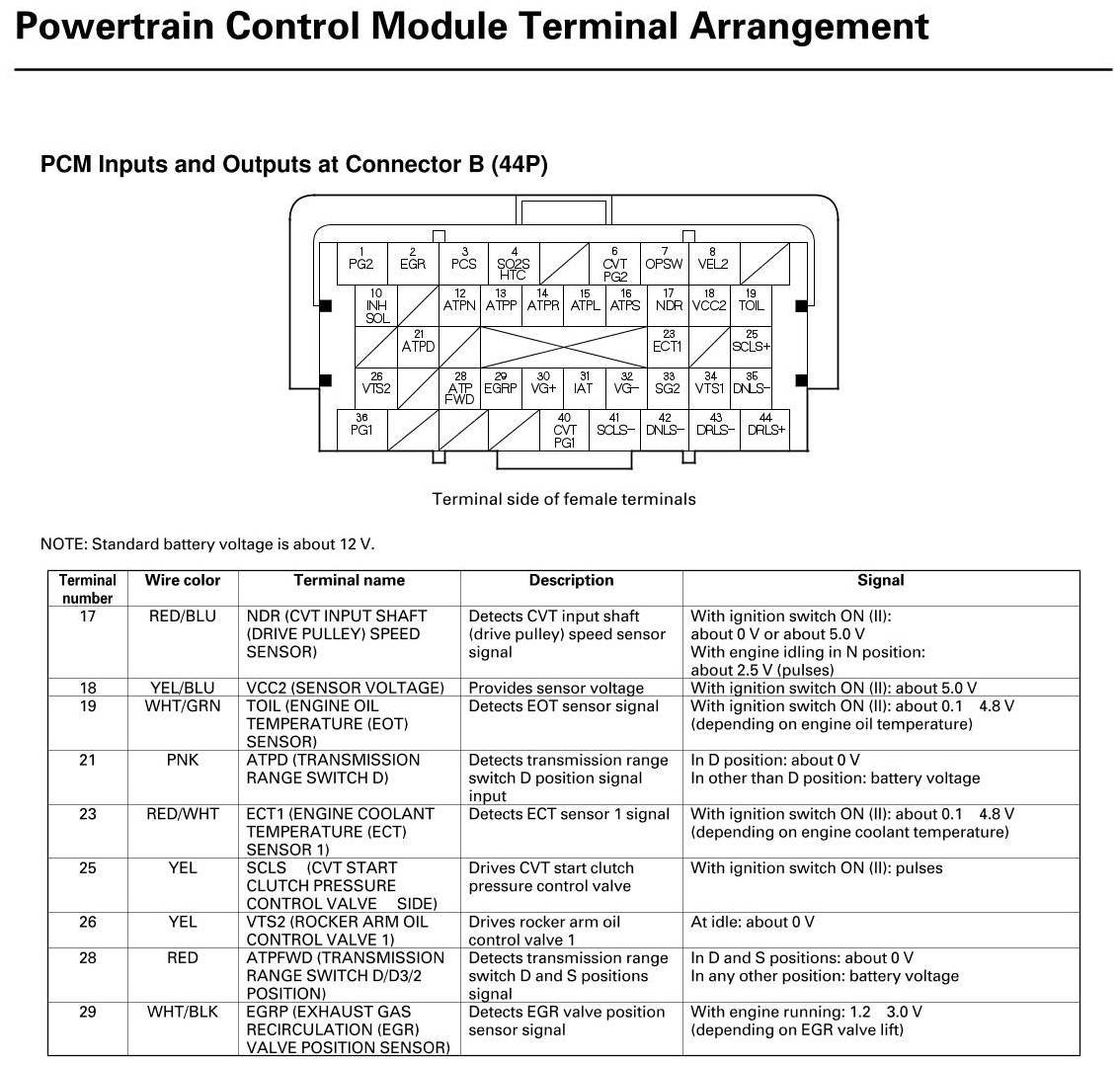 PCM Inputs And Outputs At Connector B