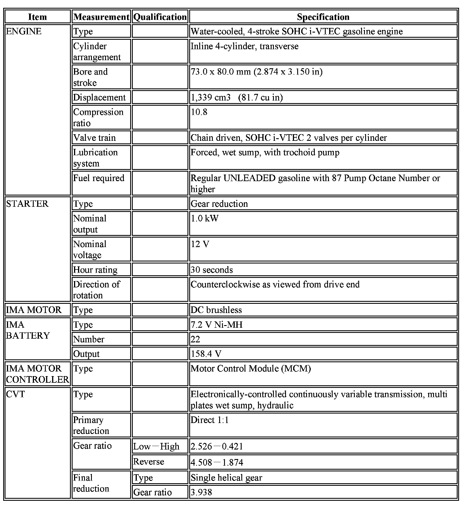 Civic L4-1.3L Hybrid