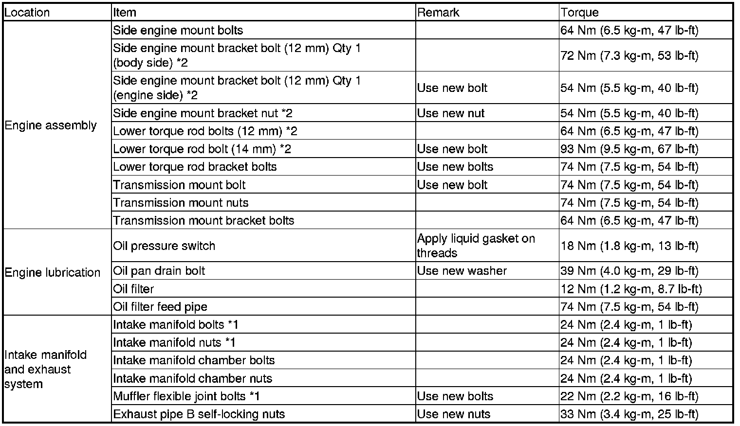 *2: Follow the S/M procedures closely for torque, sequence, and special steps.