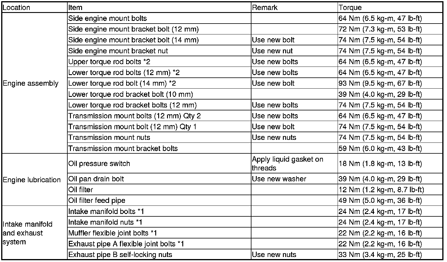 *2: Follow the service data procedures closely for torque, sequence, and special steps.