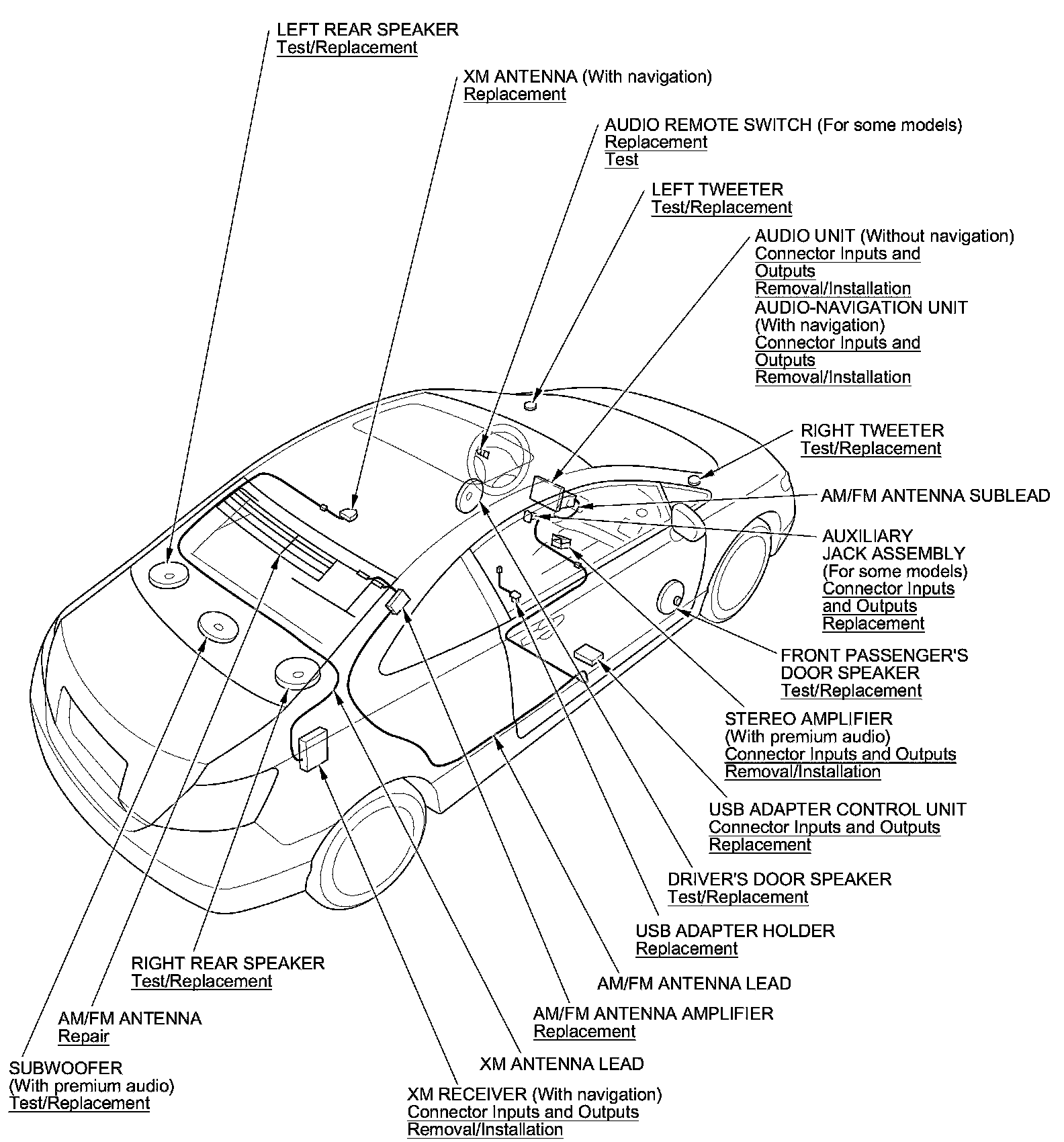 Audio System Component Location Index (2-Door)