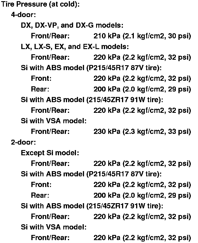 4. Check the tire size and tire pressure.