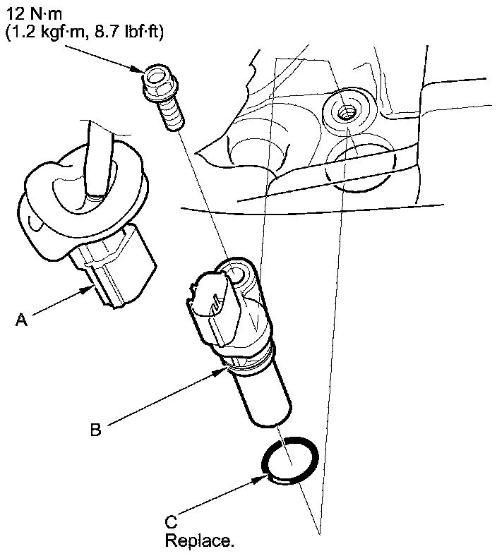 4. Install the parts in the reverse order of removal with a new O-ring (C).