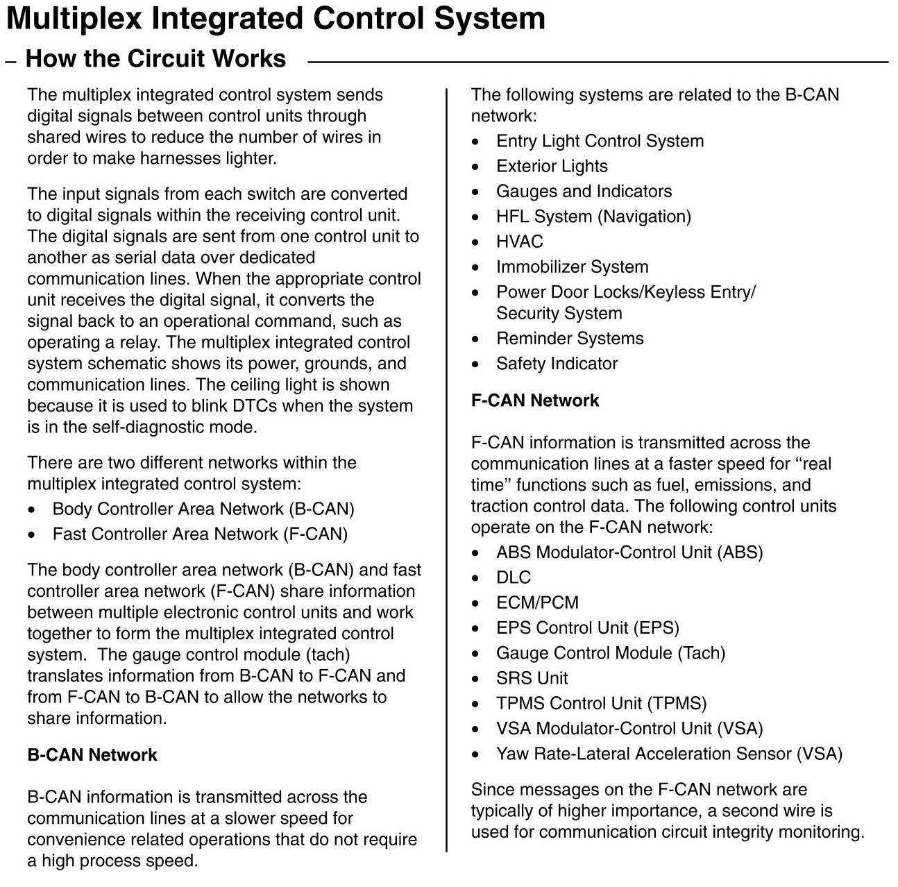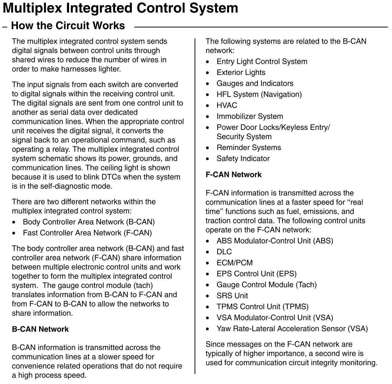 Home >> Honda >> 2011 >> Civic L4-1.8L >> Repair and Diagnosis >> Powertrain Management >> Computers and Control Systems >> Information Bus >> Description and Operation >> How The Multiplex Integrated Control System Circuit Works