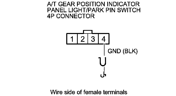 18. Check for continuity between A/T gear position indicator panel light/park pin switch 4P connector terminal No. 4 and body ground.
