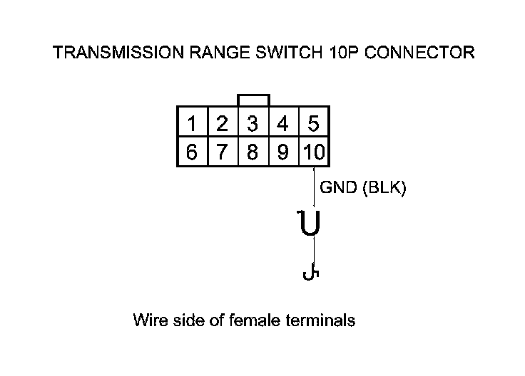 23. Check for continuity between transmission range switch 10P connector terminal No. 10 and body ground.