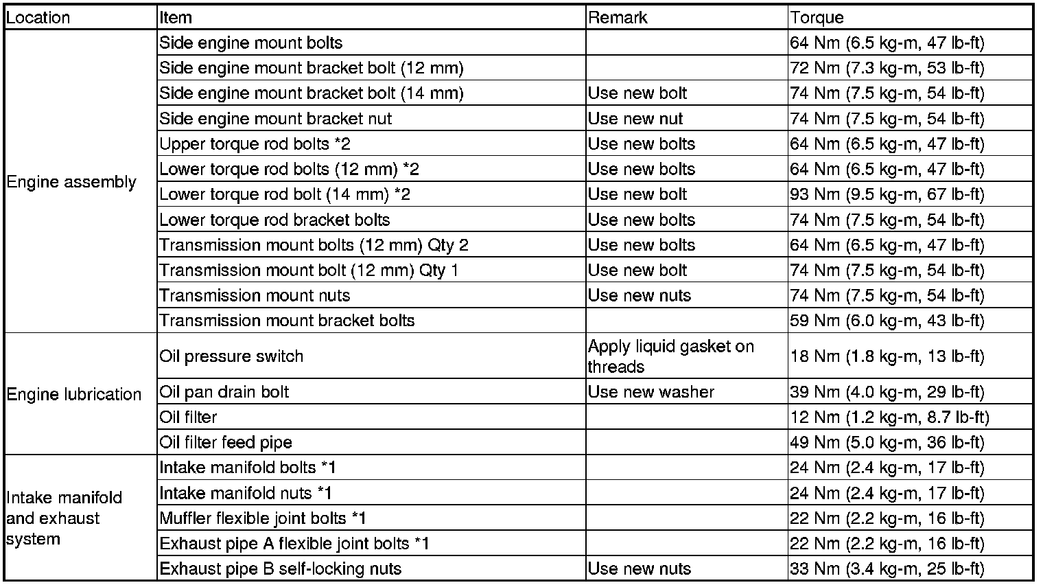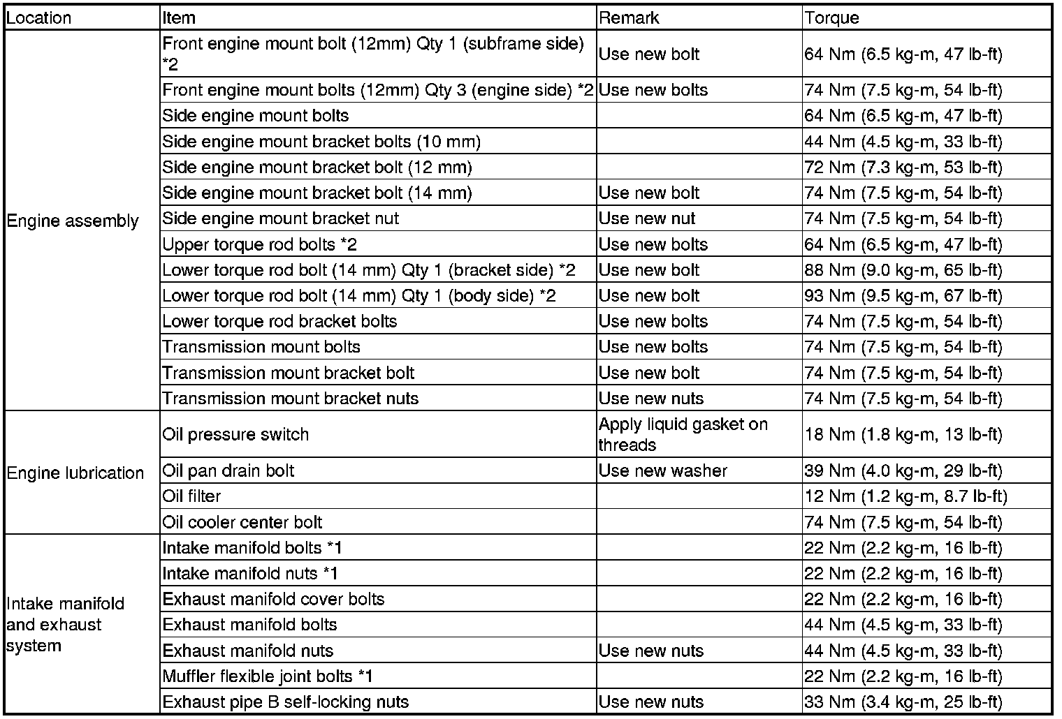 *2: Follow the service data procedures closely for torque, sequence, and special steps.