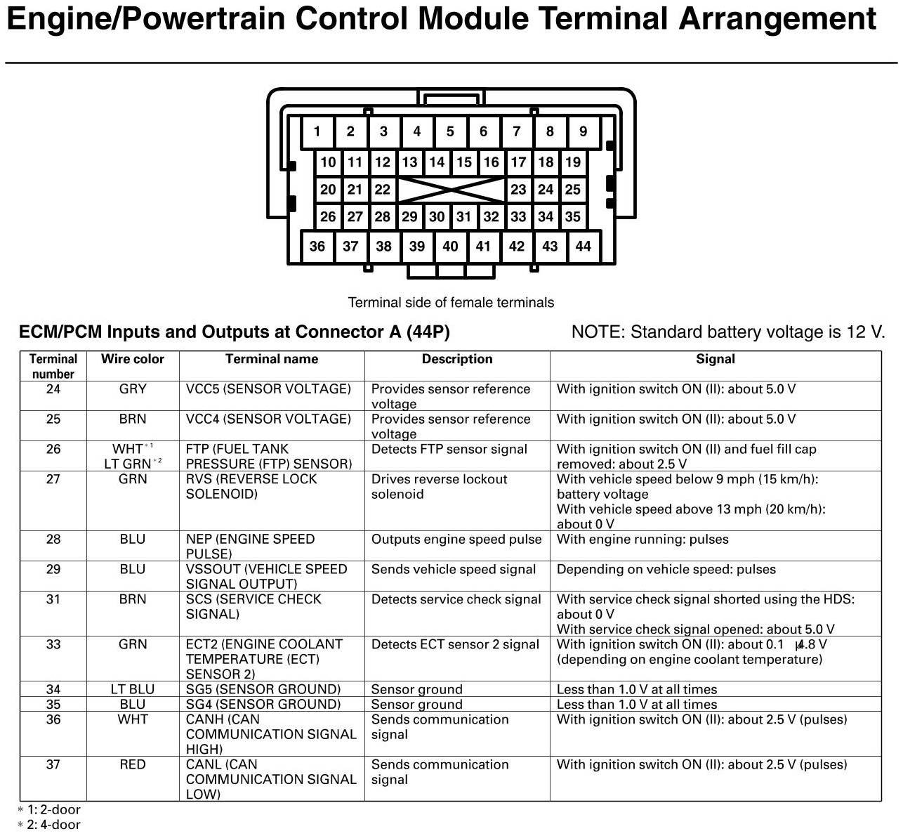 ECM/PCM Inputs And Outputs At Connector A (Si)
