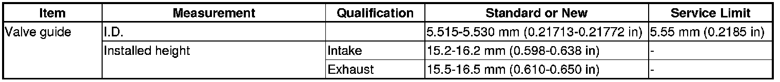 Valve Guide Specification(s)