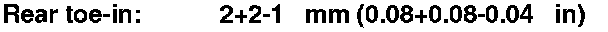 The suspension can be adjusted for front camber, front toe, and rear toe. However, each of these adjustments are related to each other. For example, when you adjust camber, the toe will change. Therefore, you must adjust the front wheel alignment whenever you adjust camber or toe.