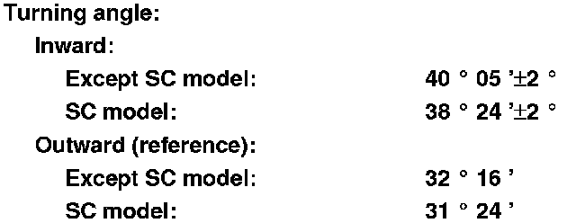 1. Turn the wheel right and left while applying the brake, and measure the turning angle of both wheels.