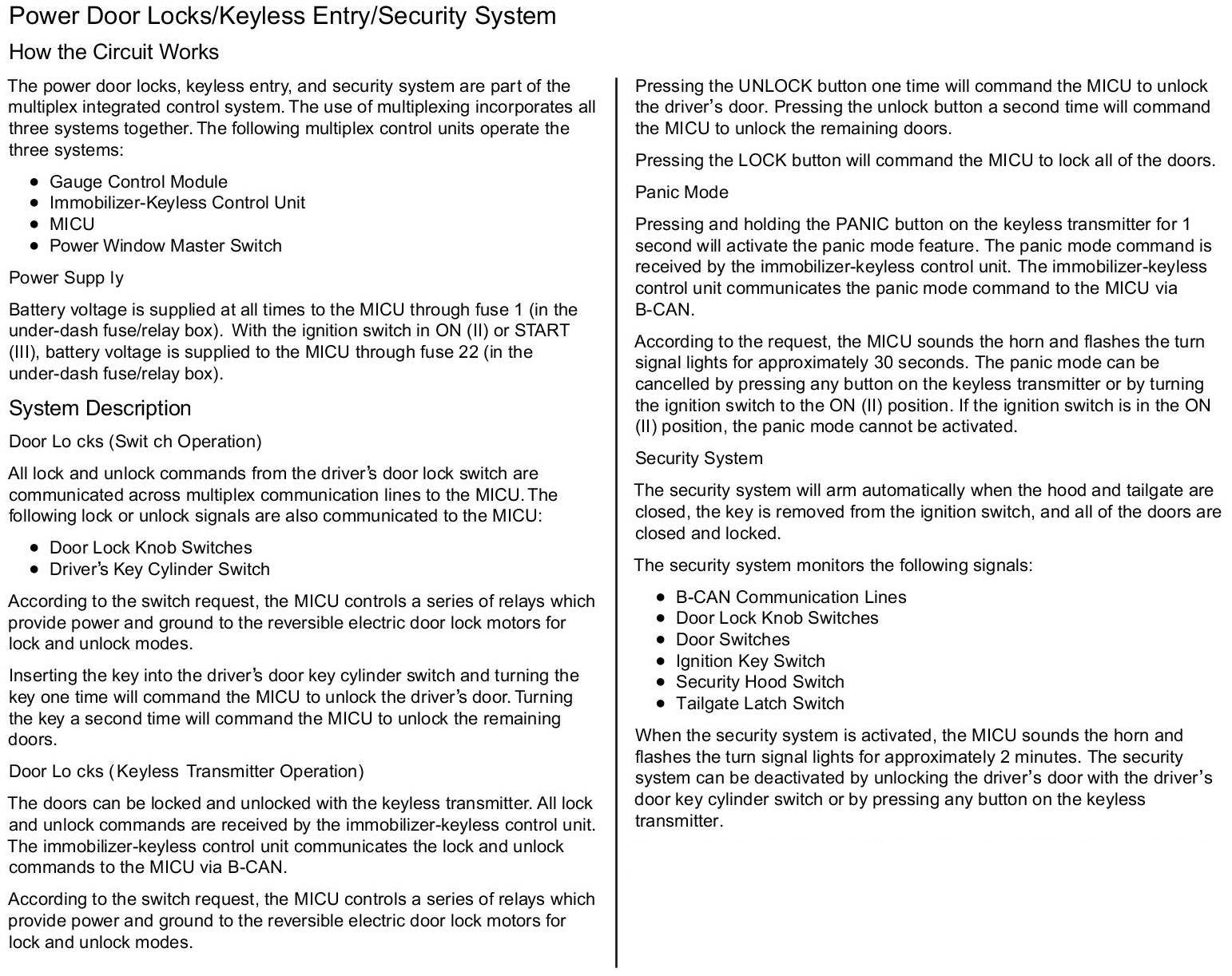 How The Power Door Locks/Keyless Entry/Security System Circuit Works