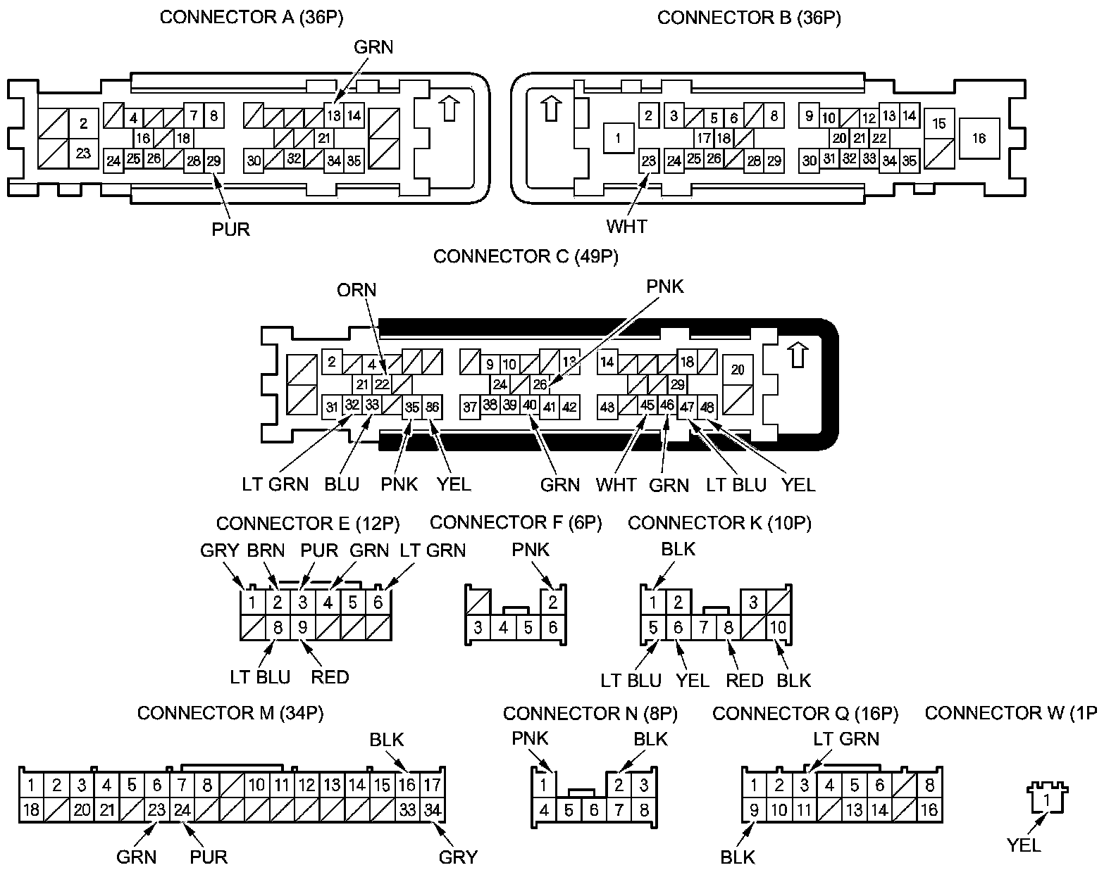 NOTE: All connector views are shown from wire side of female terminals.