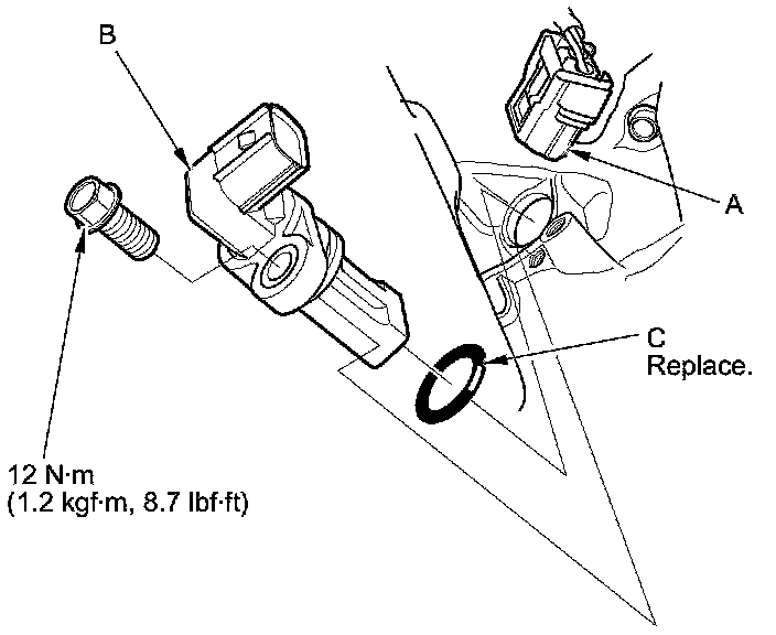 5. Install the parts in the reverse order of removal with a new O-ring (C).