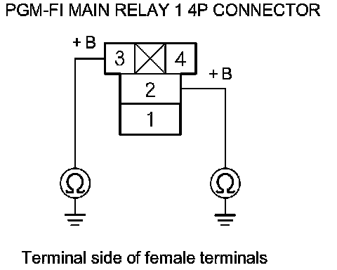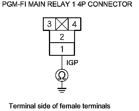 45. Check for continuity between PGM-FI main relay 1 4P connector terminal No. 1 and body ground.