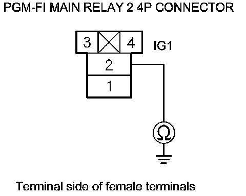 50. Check for continuity between PGM-FI main relay 2 4P connector terminal No. 2 and body ground.