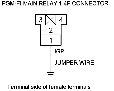 69. Connect PGM-FI main relay 1 4P connector terminal No. 1 to body ground with a jumper wire.
