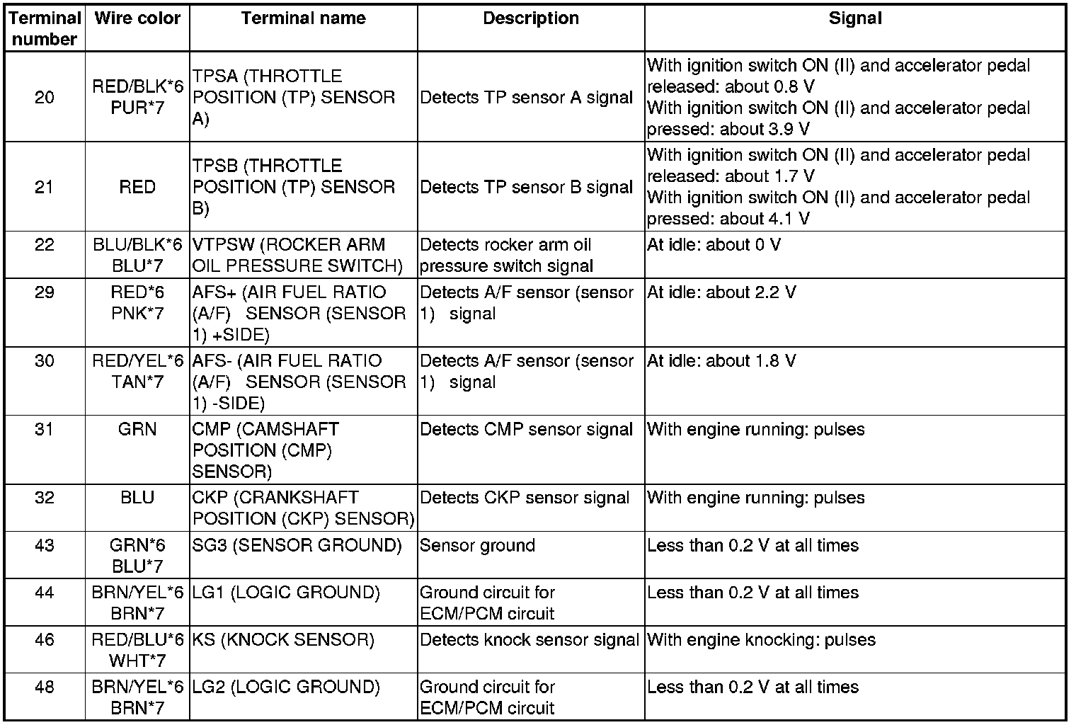 ECM/PCM Inputs and Outputs at ECM/PCM Connector A (square) (49P)