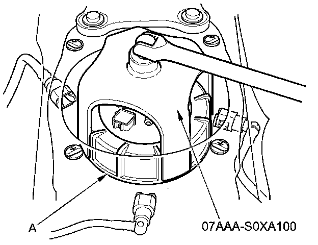 7. Using the special tool, loosen the locknut (A).