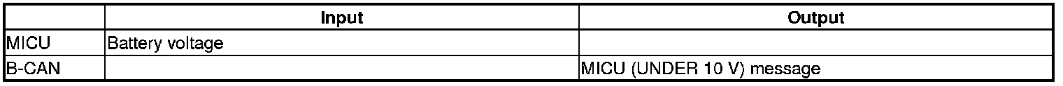 When any of the data from the B-CAN circuit cannot be received within a specified time, or an unusual combination of data is recognized, the MICU moves to the software fail-safe mode. The data that cannot be received is forced to a pre-programmed value.