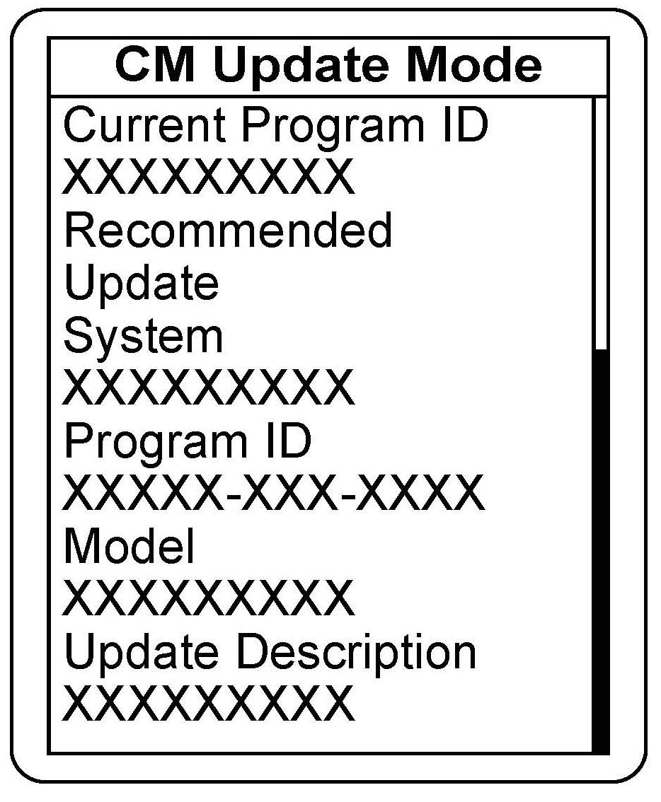 *9. The current program ID, the recommended update, and other details appear. Press ENTER to continue, or press ESC to exit.