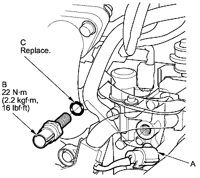 3. Install the parts in the reverse order of removal with a new O-ring (C).