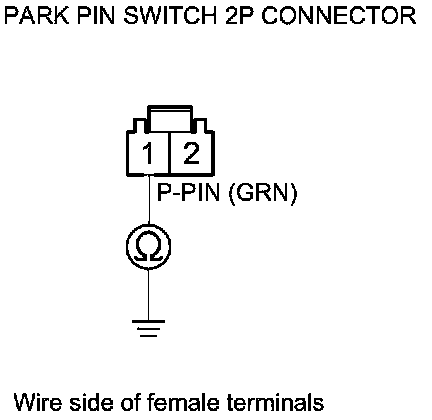 17. Check for continuity between park pin switch 2P connector terminal No. 1 and body ground.