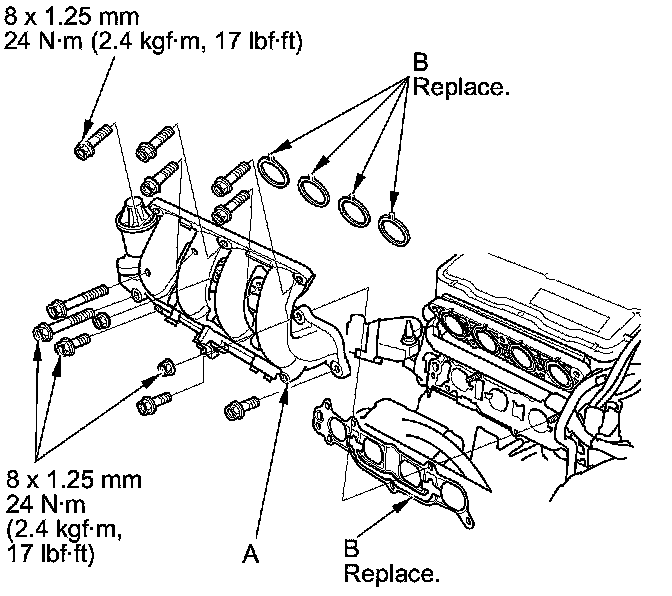 Tighten the bolts and nuts in a crisscross pattern in three steps, beginning with the inner bolt.