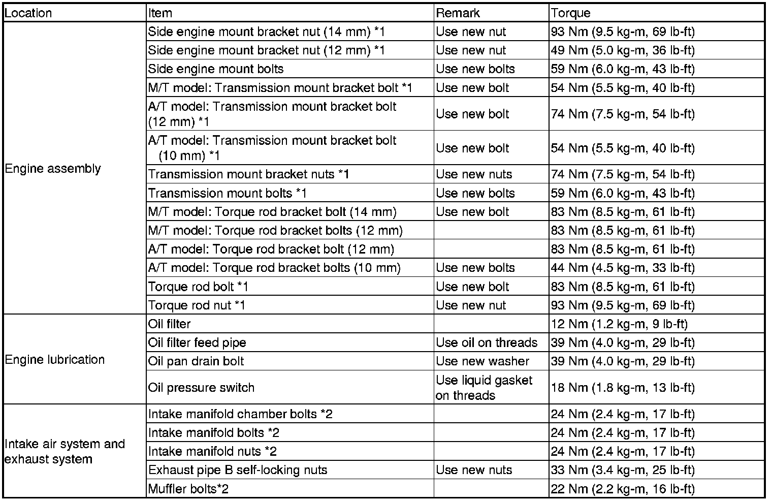 *2: Follow the S/M procedures closely for torque, sequence, and special steps.