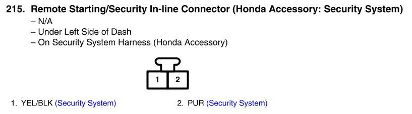 Remote Starting/Security In-Line Connector Connector View (Honda Accessory: Security System)
