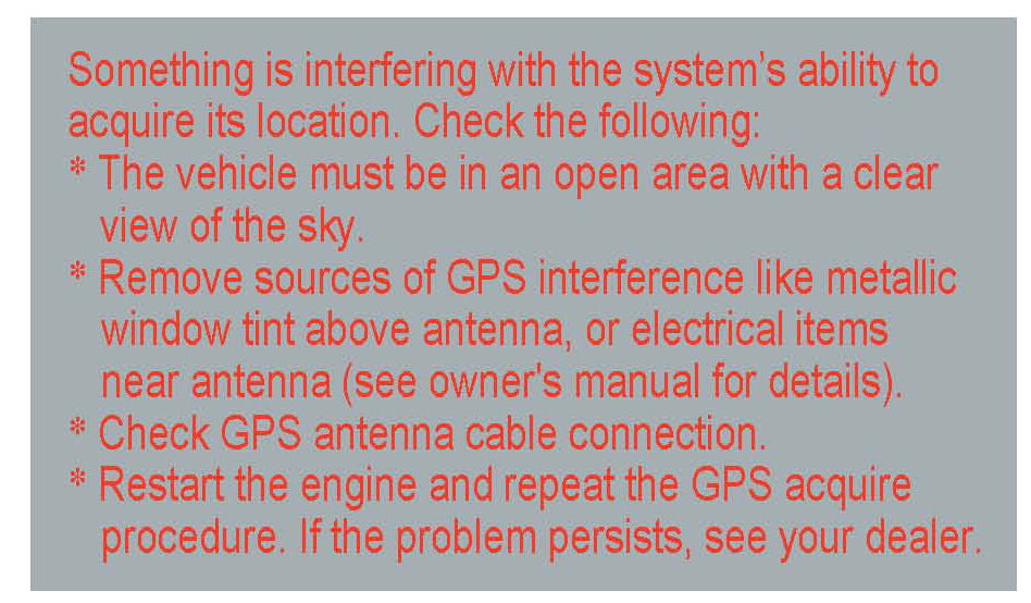 ^ The GPS antenna receives location information from orbiting satellites. Anything that blocks or interferes with the signal affects accuracy. The GPS signal can be blocked or interfered with (vehicle position shown incorrectly on the map) by: