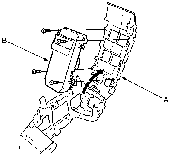 3. Remove the screws and replace the power window master switch (B).