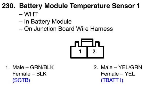 View 230 - Battery Module Temperature Sensor 1 Connector View