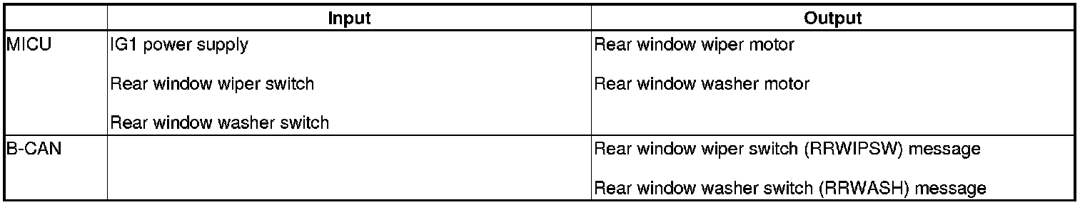 The MICU control of the rear window wiper motor and the rear washer motor is based on inputs from each switch.