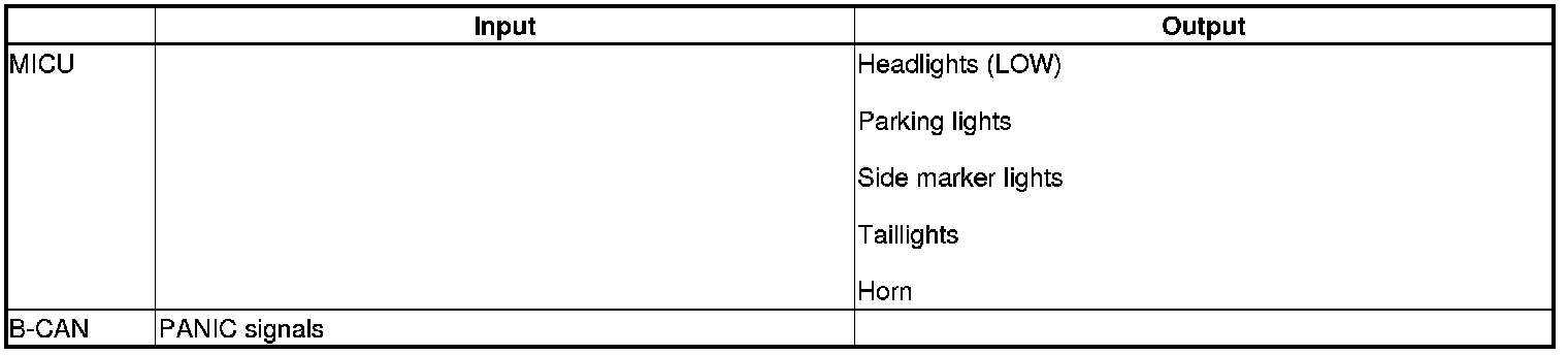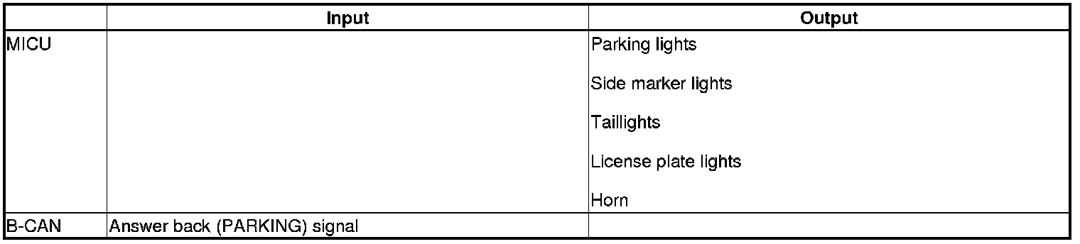The MICU control of the exterior lights and the horn is based on inputs from each switch and B-CAN data.