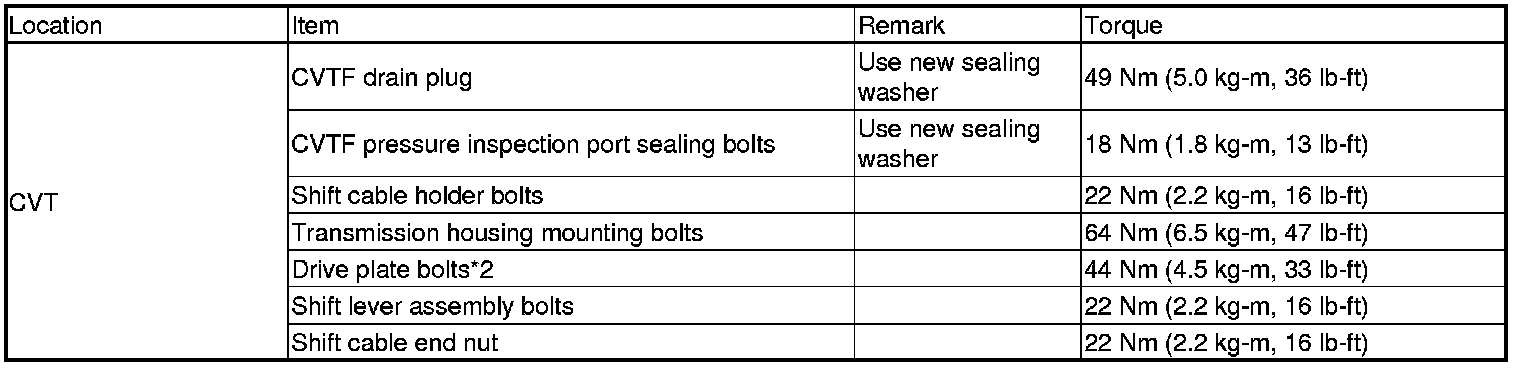 Torque SpecificationsNOTE
