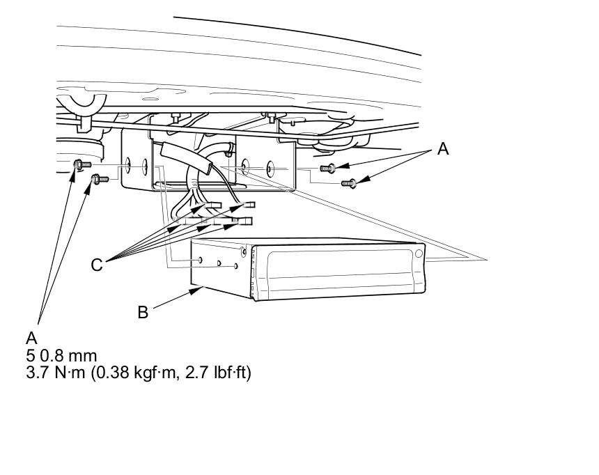 5. Disconnect the navigation unit connectors (C).